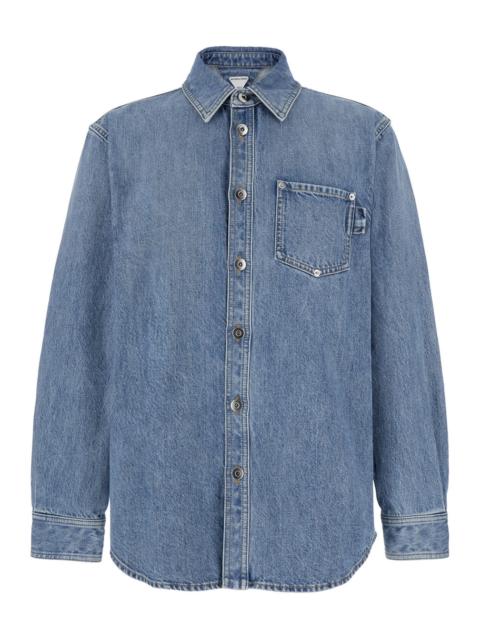 Bottega Veneta Men Light Blue Oversized Shirt With Patch Pocket In Cotton Denim Man