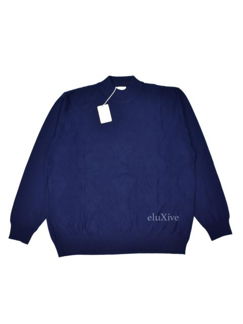 Brioni Navy Diamond Knit Wool Mock Neck Sweater NWT