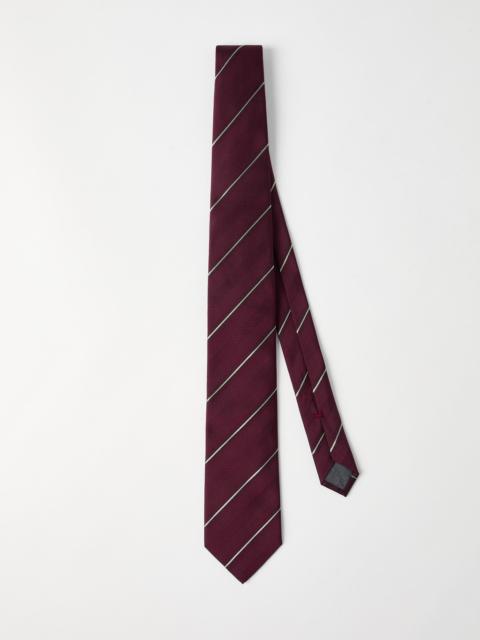 Explore the exquisite range of men’s accessories by Brunello Cucinelli, featuring a distinguished selection of luxurious ties. Each tie embodies the essence of Italian craftsmanship, combining impeccable design with superior-quality materials. Discover the perfect piece to complete your elegant wardrobe, showcasing timeless patterns and sophisticated textures.