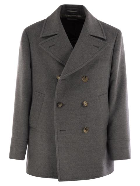 Brunello Cucinelli Men Double Wool Flannel Pea Coat With Metal Buttons