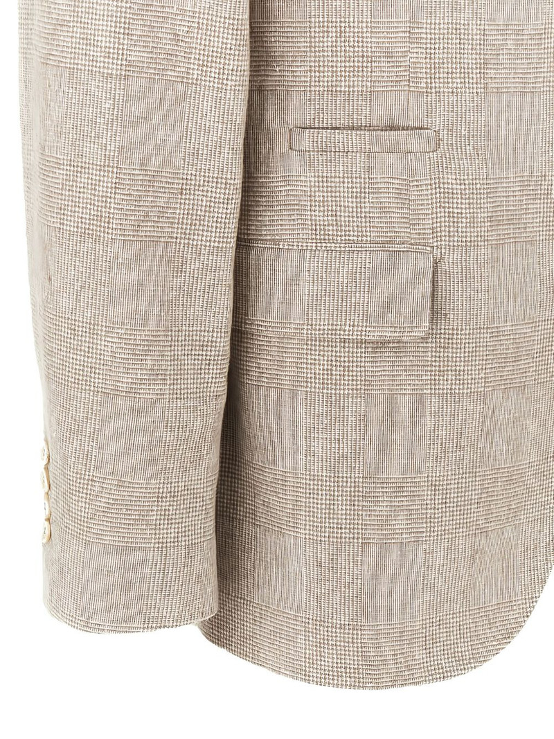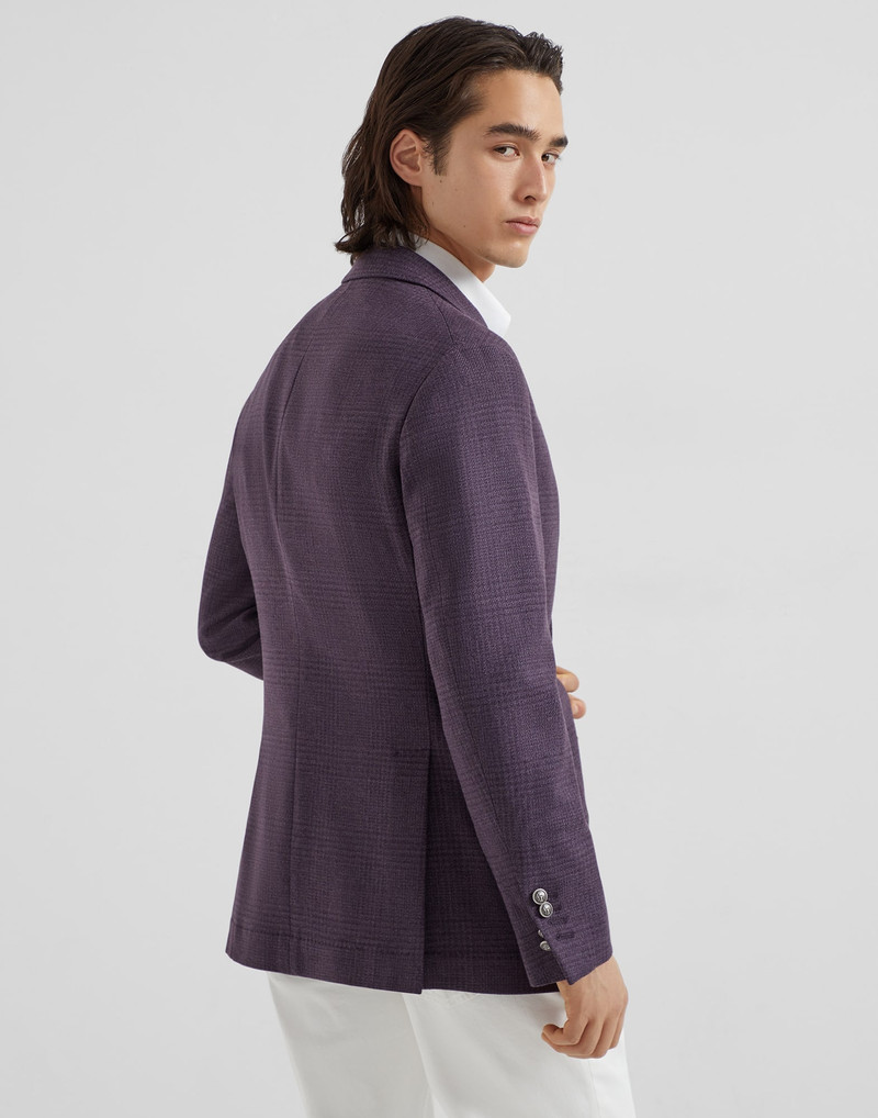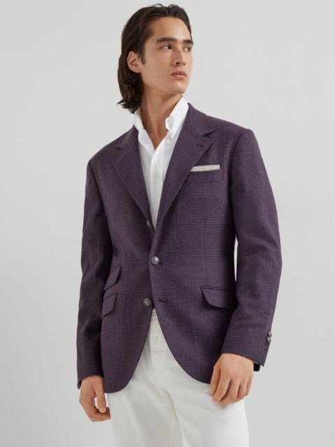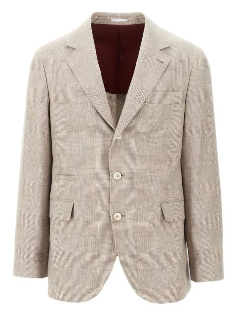 Wool, cashmere and silk tone-on-tone Prince of Wales deconstructed Cavallo blazer with metal buttons