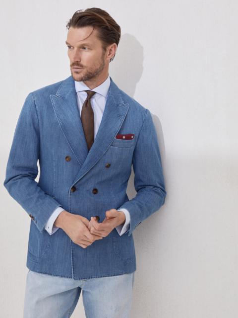 Lightweight old denim deconstructed blazer with peak lapels and patch pockets