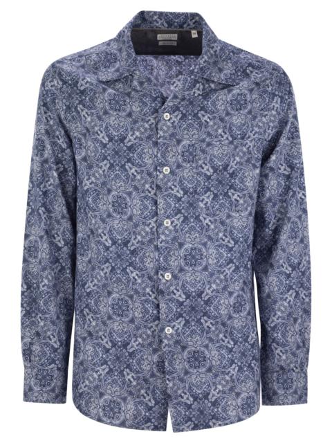 Brunello Cucinelli Men Slim Fit Cotton Paisley Canvas Shirt