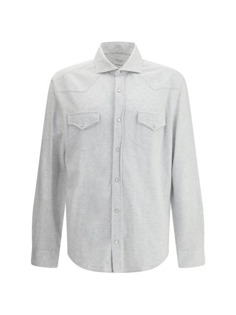 Brunello Cucinelli Men Jersey Shirt With Spread Collar