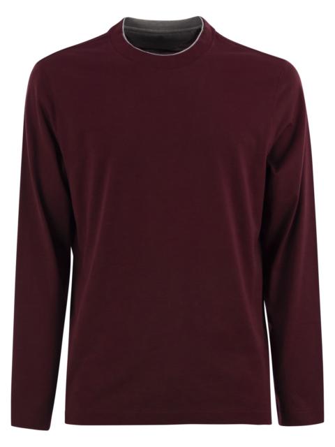 Brunello Cucinelli Men Crew-Neck Cotton Jersey T-Shirt With Long Sleeves