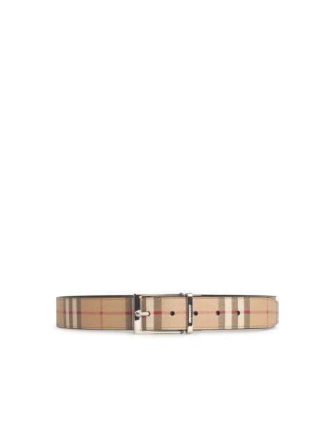 Burberry Men Beige Reversible Belt With All-Over Check Motif In Leather Man