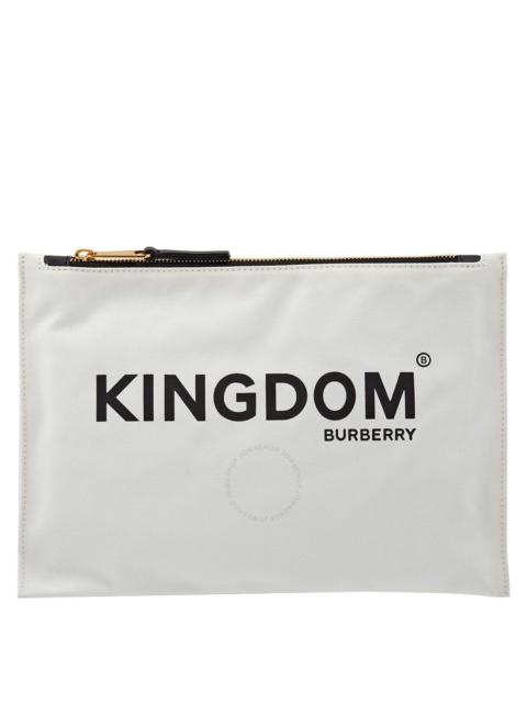 Open Box - Burberry Medium Kingdom Print Cotton Pouch In Chalk White