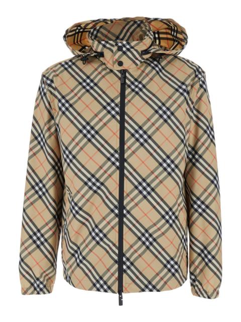 Burberry Men Beige Jacket With Removable Hood And All-Over Check Motif In Tech Fabric Man