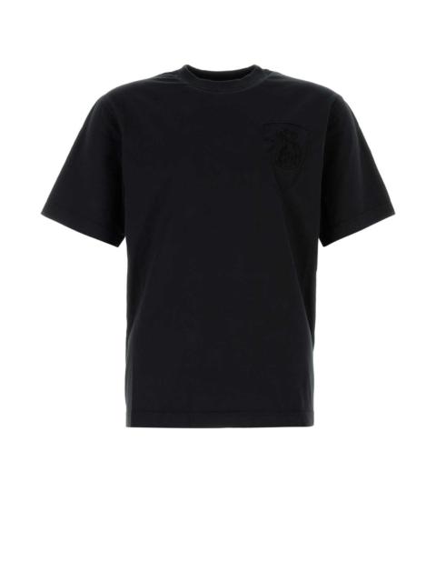 Burberry Men Black T-Shirt With Embroidered Logo On The Chest In Cotton Man