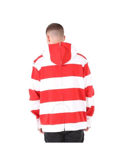 Burberry Men's Red Zip Detail Striped Cotton Hoodie