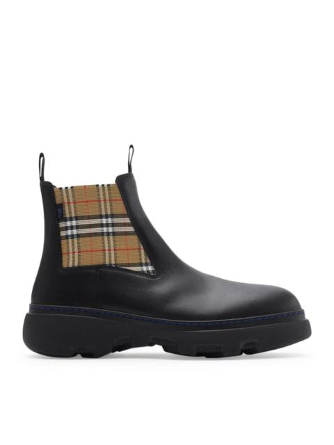 Burberry Vintage Check Detail Leather Chelsea Boots