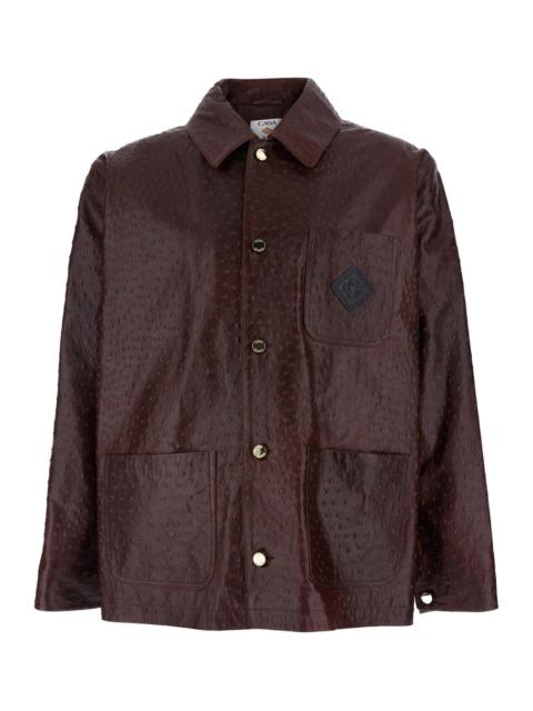 Casablanca Men Bordeaux Jacket With Logo Patch On The Front And Ostrich Skin Effect In Leather Man