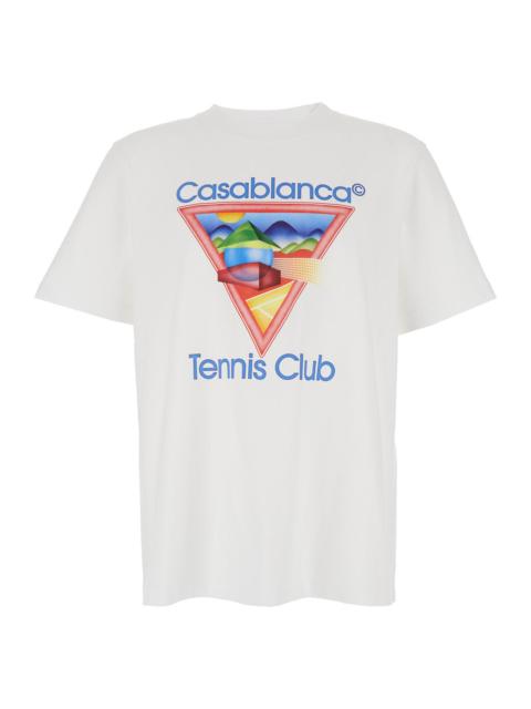 Casablanca Men White Crewneck T-Shirt With Logo On The Front In Cotton Man