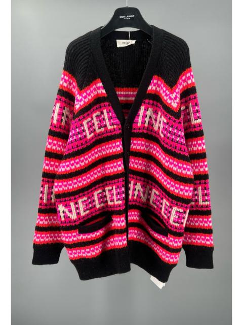 CELINE Men's striped logo contrast wool cardigan