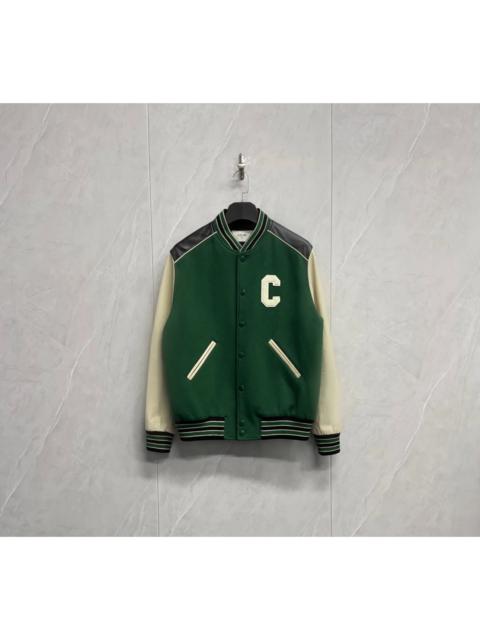 Celine flocked logo leather baseball jacket