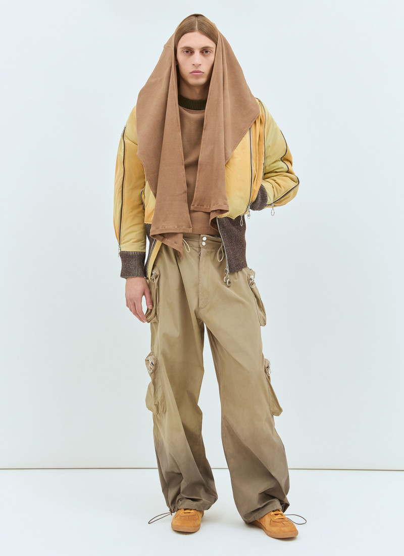 CHARLIE CONSTANTINOU’s neoteric ready-to-wear label merges avant-garde silhouettes with futuristic adaptability. A graduate of Central Saint Martins, Constantinou draws inspiration from extreme weather, function, and versatility to create multipurpose garments that feel at home in a sci-fi landscape. Signature shrunken quilting techniques, bungee straps, and zip fastenings allow pieces like nylon taffeta trousers, gilets, and puffer boots to morph and fit any body. Crafted in organic, structured, and dynamic forms, the designs are presented in sun-bleached earth tones, royal purples, and teals. Where cyberpunk meets crafty couture, Constantinou’s creations redefine adaptability and innovation in contemporary fashion.