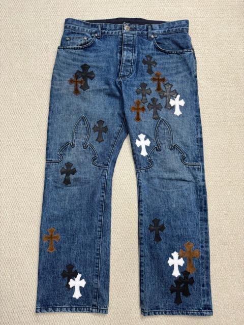 - Chrome HeartsLeopard black cross patch brown denim jeans