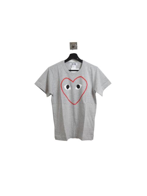 Comme Des Garcons Play Red Outlined Heart Tee Grey