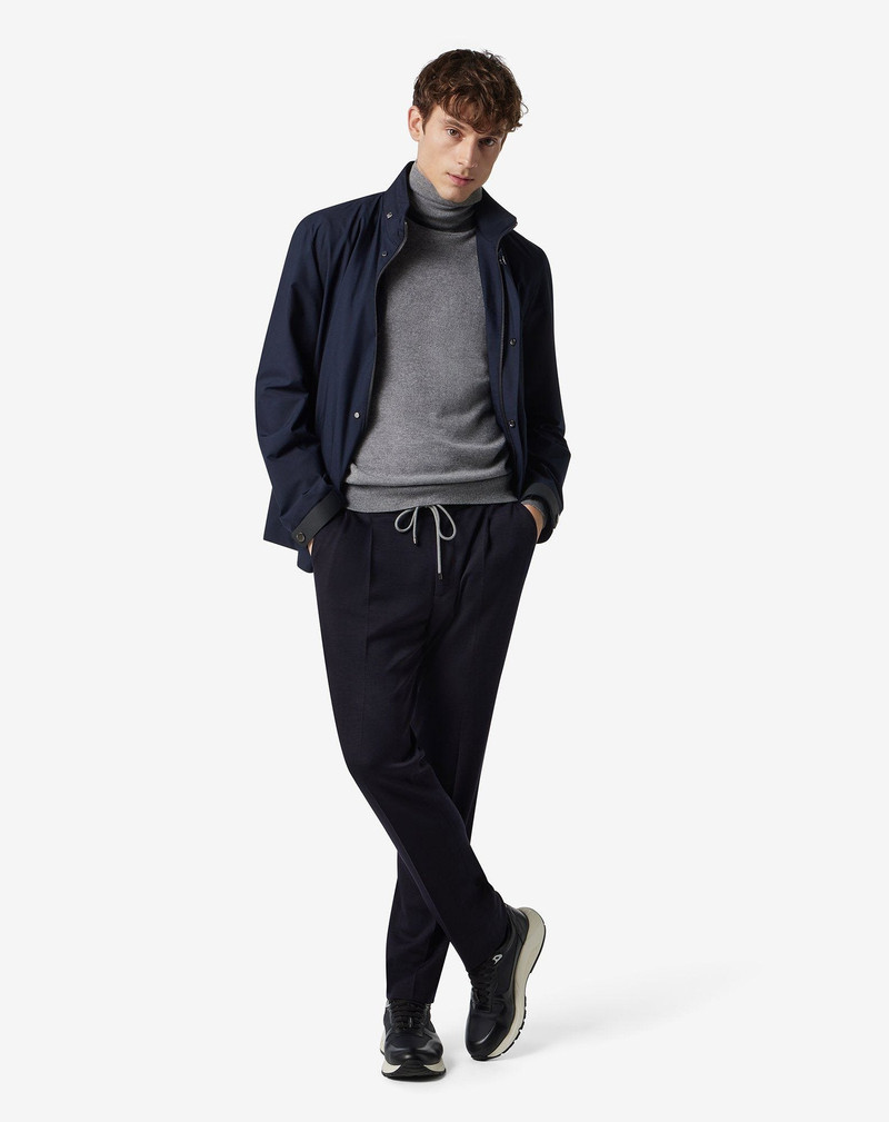 Blue stretch cashmere and cotton gabardine trousers