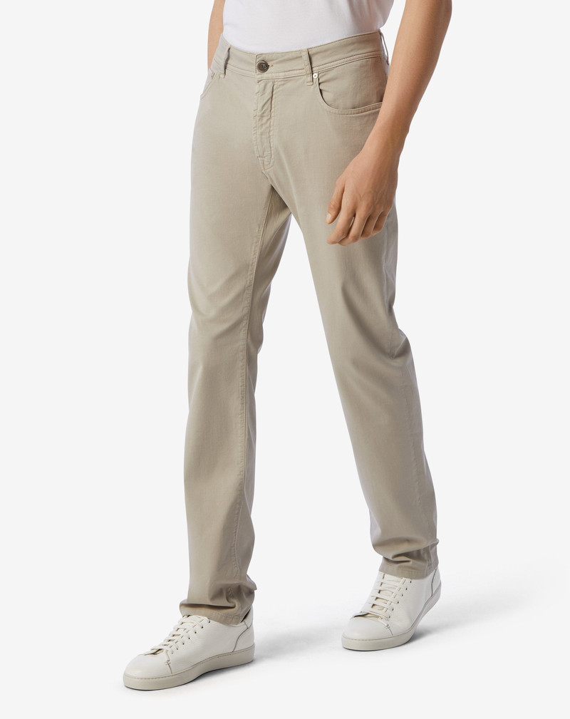 Greige garment-dyed stretch cotton trousers