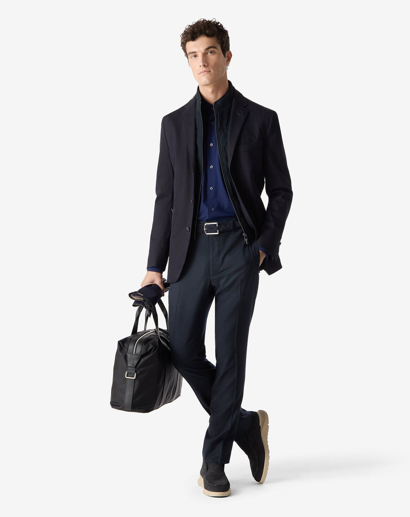 Dark blue technical wool fabric chinos