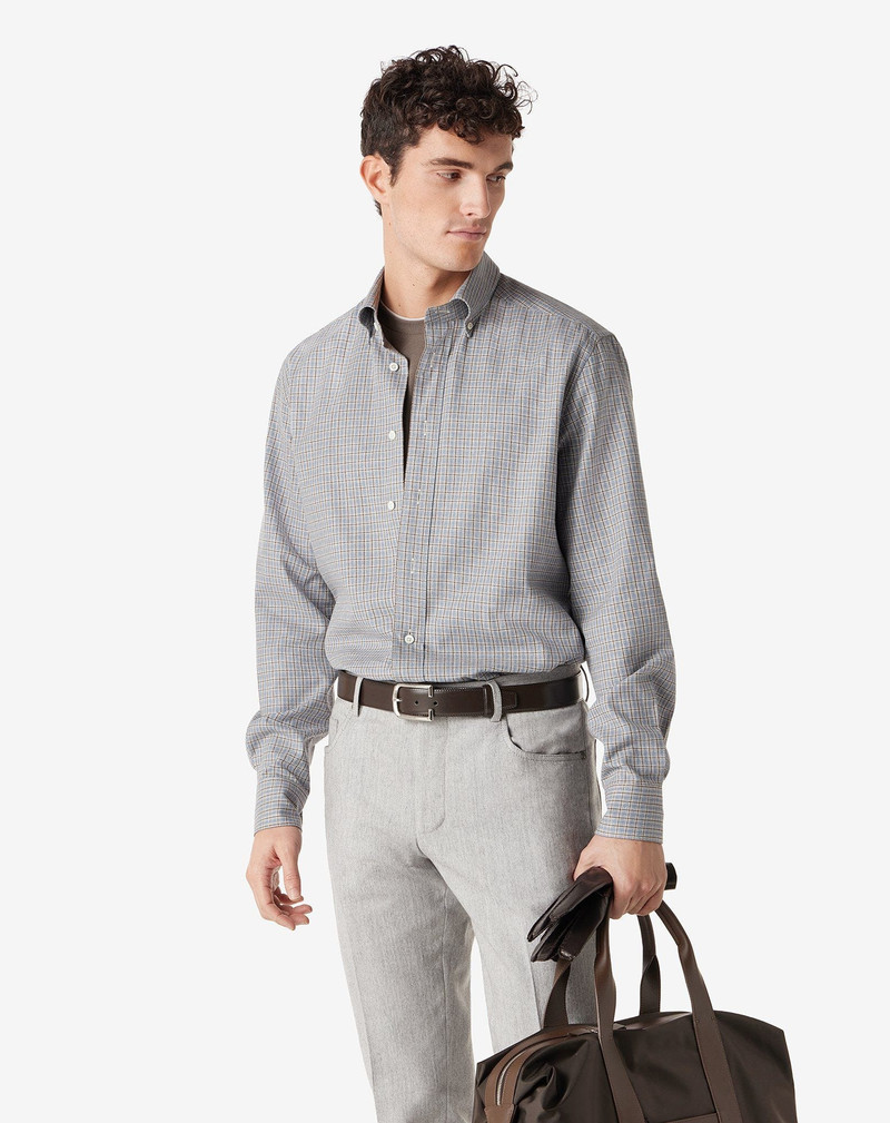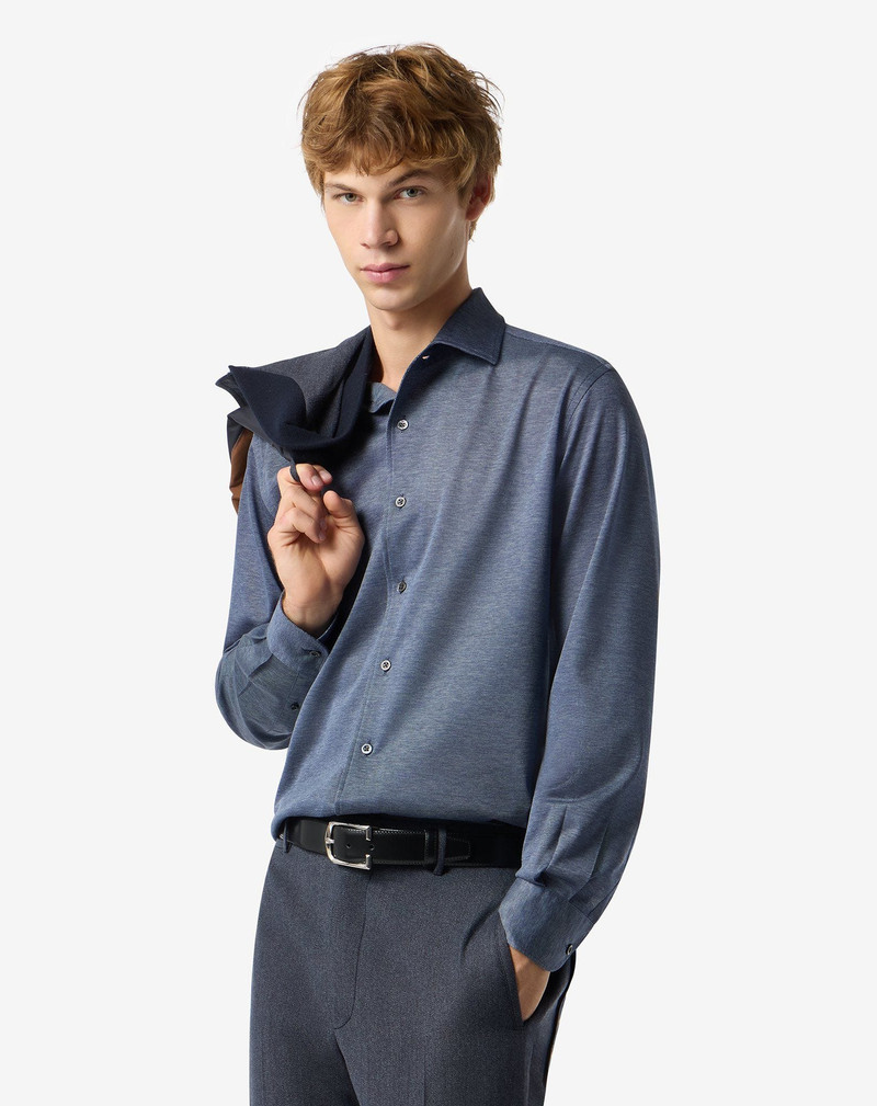 White/light Blue bi-elastic fabric shirt with micro pattern