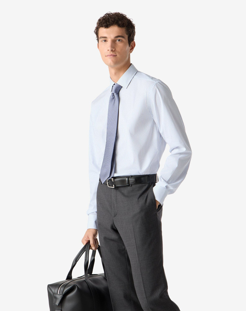 Cotton shirt with light blue striped pattern