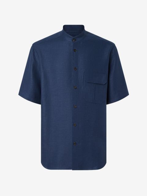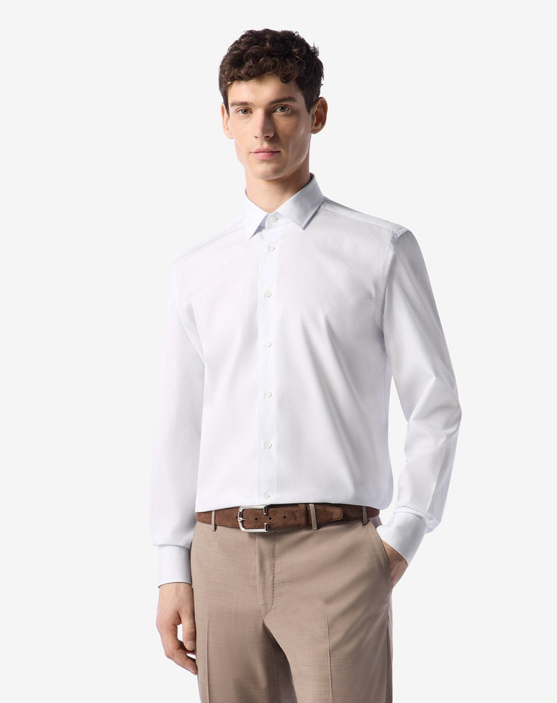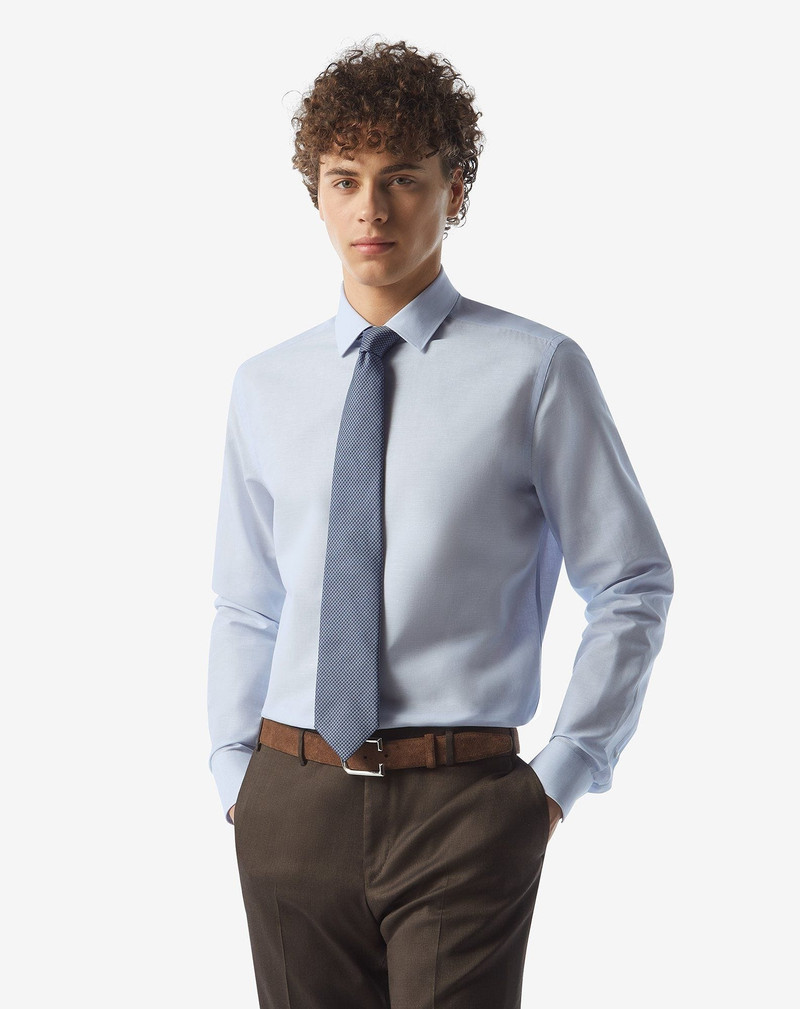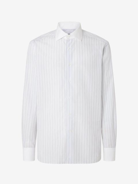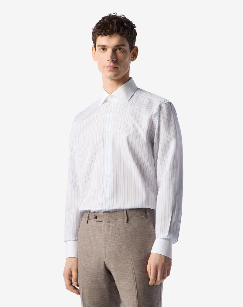Bi-elastic fabric shirt with white/light blue micro stripes
