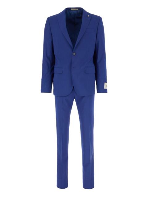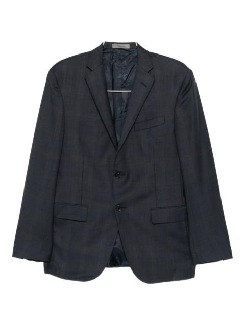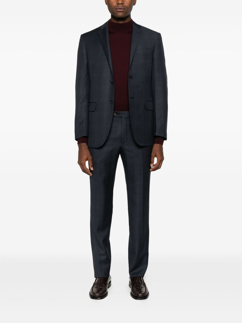 Blue wool flannel and cashmere suit with glen plaid pattern