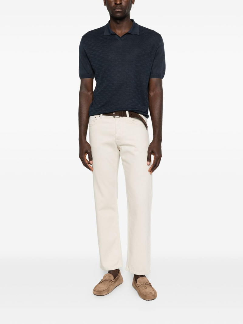 Textured Short-Sleeves Cotton-Knit Polo Shirt
