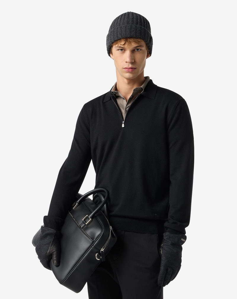 Black zip-up extra fine wool polo shirt