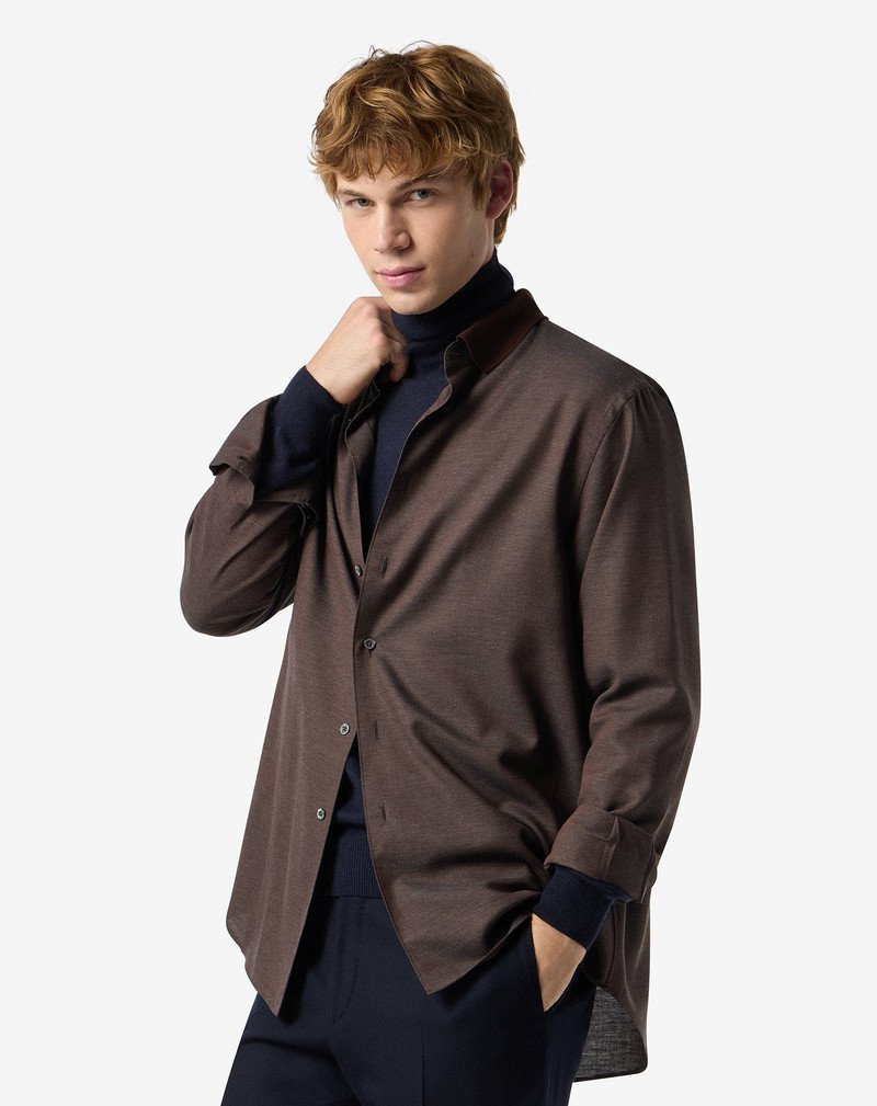 Brown cotton flannel and cashmere shirt