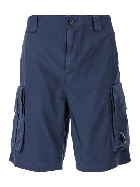 C.P. Company Men Blue Bermuda Pants With Belt Loops And Two Maxi Patch Pockets On The Side In Cotton