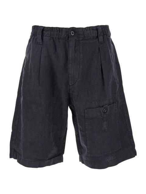 C.P. Company Men Blue Bermuda Pants With Elastic Waist And Logo Patch On The Rear In Linen Man