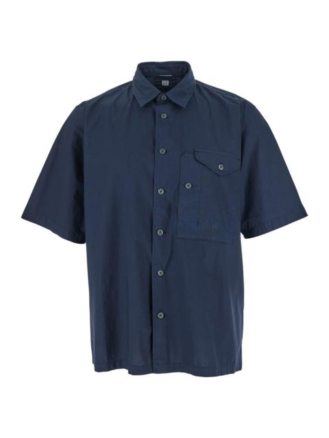 C.P. Company Men Blue Shirt With Classic Collar And Logo Lettering Embroidery On The Front In Cotton