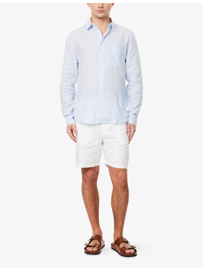 Men's Long Sleeve Shirt Malibu Woven Linen Light Blue and White Stripe