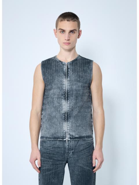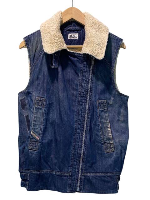Diesel Denim Vest Jacket Sherpa Lining Sleeveless Zip Front