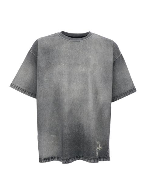 Diesel Men Grey T-Shirt With Dropped Shoulder And Crew Neck Faded Effect In Cotton Man