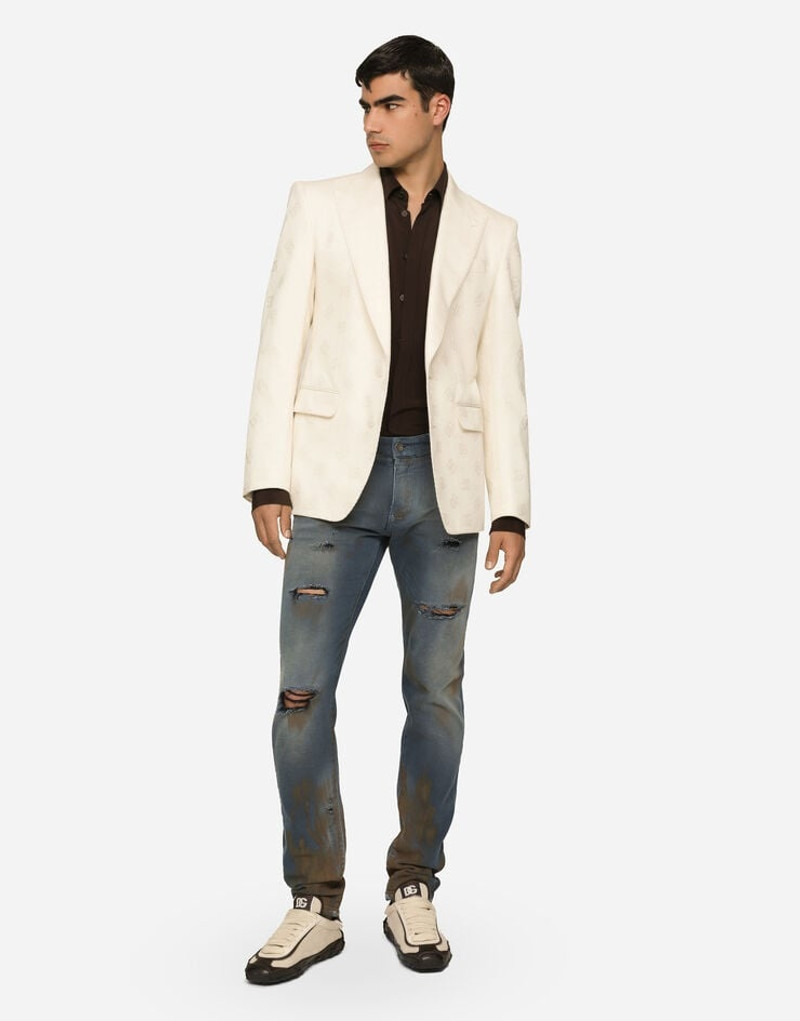 Explore the effortless sophistication of Dolce & Gabbana jeans, a standout in our exclusive range of luxury men's clothing. Each pair of Dolce & Gabbana jeans strikes the perfect balance between contemporary style and timeless design, crafted for modern gentlemen who value quality and refinement.