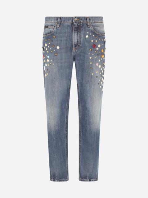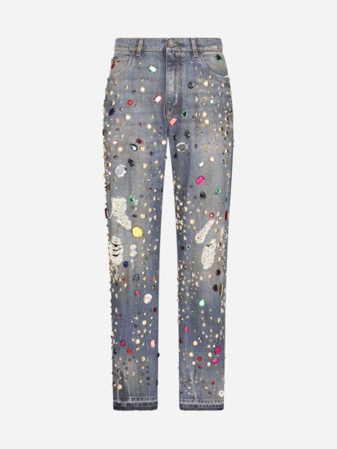 Explore the effortless sophistication of Dolce & Gabbana jeans, a standout in our exclusive range of luxury men's clothing. Each pair of Dolce & Gabbana jeans strikes the perfect balance between contemporary style and timeless design, crafted for modern gentlemen who value quality and refinement.