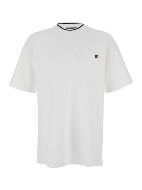 Dolce & Gabbana Men White Crewneck T-Shirt With Logo Embroidery On The Front In Cotton Man