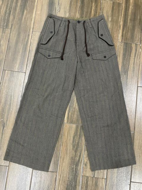 High Waist Grey Wool Herringbone Wide Cargo Pants Trousers