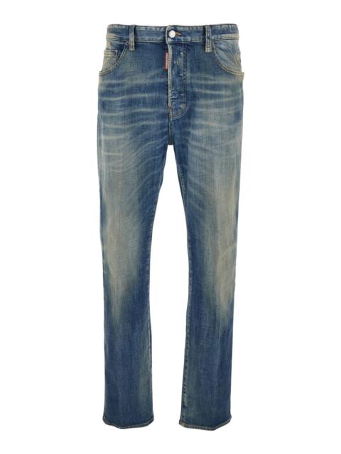 Dsquared2 Men Blue Jeans With Logo Patch On The Rear And Distressed Effect In Denim Man