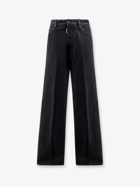 Dsquared Men Black Stretch Denim Loose Wide-Leg Jeans