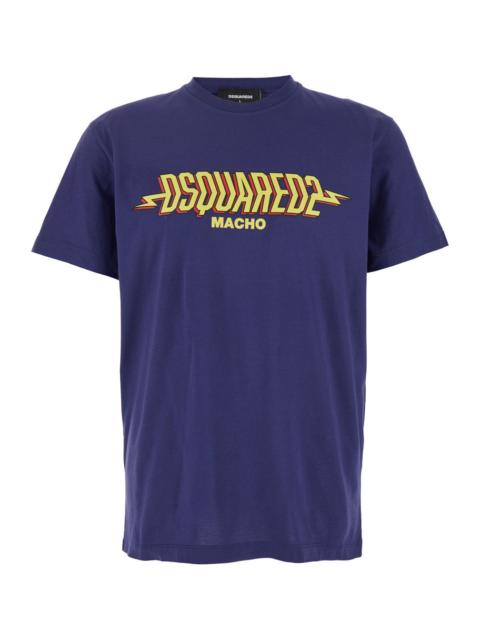 Dsquared2 Men Blue Crewneck T-Shirt With Logo Print On The Front In Cotton Man