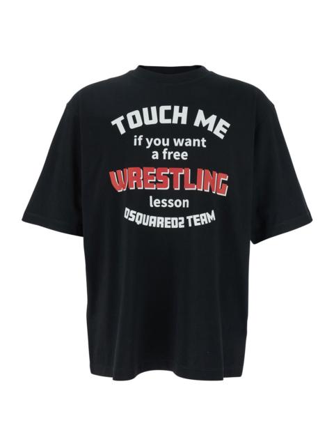 Dsquared2 Men Black Crewneck T-Shirt With Print On The Front In Cotton Man