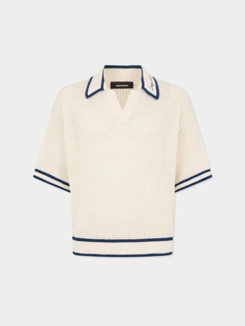 OPEN WORK KNIT POLO
