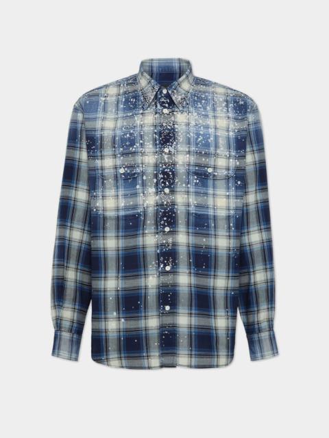 D2 WASHED CHECK INDIGO DROPPED SHOULDER SHIRT