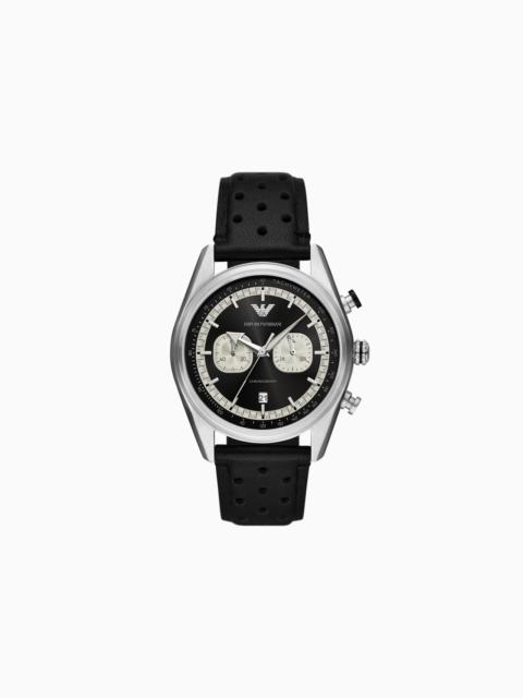 Chronograph black leather watch