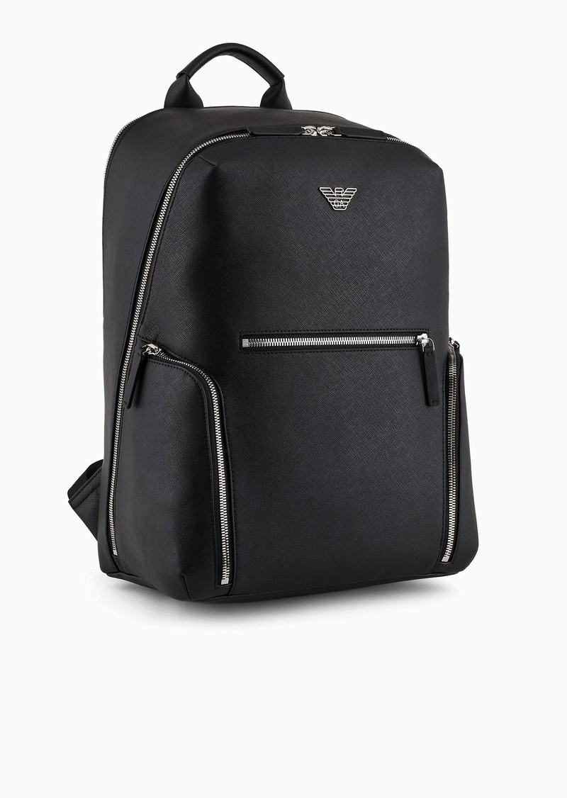 ASV regenerated Saffiano leather round backpack with eagle plate